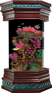 OCEAN TREASURES COLLECTION OT6001 6-Gallon Executive Aquarium Kit includes LED Lighting as well as a filter. The Executive model gains influence from the distinguished lines and refinement of richly appointed executive suites. The base and top are available with a patina wave inset and a carved sand dollar, adding to the finishing touches. With its classic wood-inspired detailing and timeless finish, the Executive is the perfect aquarium for any library or office setting. Your aquarium’s filtration system is expected to last several years or more when properly maintained. The lighting system in your aquarium has been specially designed for this application. Bulbs should be changed annually in order to achieve optimal and intended spectrum. Each Ocean Treasures Collection aquarium has been fabricated using only the finest materials and environmentally safe products available to the trade. This aquarium is designed to last a lifetime with proper care and maintenance. A complete set-up kit is available for purchase separately, and includes all the necessary components to immediately establish a salt water environment such as synthetic sea salt, "live" sand and a 25 watt submersible aquarium heater. Just add water... and fish, of course! Please refer to the manufacturer’s specifications provided for details and contact information.