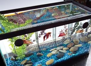 TOM TM1086 Aquarium Accessories Betta Security House with Lid - 4 compartments. KollerCraft is highly regarded for supplying superior quality, innovative pet products and reliable service. This betta security house will accommodate up to 4 bettas. Comes with a lid to keep the fish securely in their individual compartments. Silicon suction cups which result in stronger tank adhesion. There are also ample slots for ideal water circulation. Removable smoky dividers, which reduce the Betta's ability to see each other. Ideal for dividing pregnant or aggressive fish. Suitable for freshwater or saltwater.