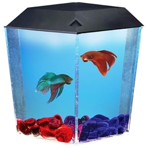AQUARIUS AQ11204 BettaView Brite Corner Tank holds a full gallon and features a lighted, removable hood and tank divider. The perfect home for Betta fish, this one gallon tank functions as an ideal night light for children's rooms. KollerCraft is highly r