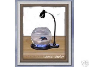 This is another award winning home for your Betta! The kit comes complete with a base, 32oz glass bowl approx. and flexible light all in one box. This set up is very versatile and can be used to display a variety of home crafts. It is use is only limited by your imagination. Perfect for counter tops, desk tops, night lights or practically anywhere! The base is black in color 8.5in long and 6.5in wide. The light fully extended is 13in high. 12 volt / 6 watt bulb included. There is no on/off switch.